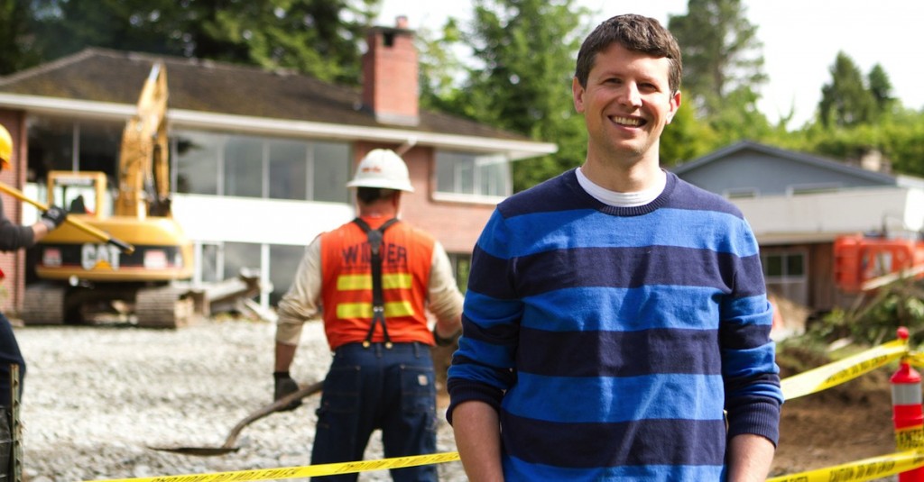 در این عکس از پرونده که توسط Porch در سال 2013 تهیه شده است ، Matt Ehrlichman مدیر عامل شرکت Porch در بیرون از خانه خود ایستاده است ، در آن زمان در دست ساخت است.