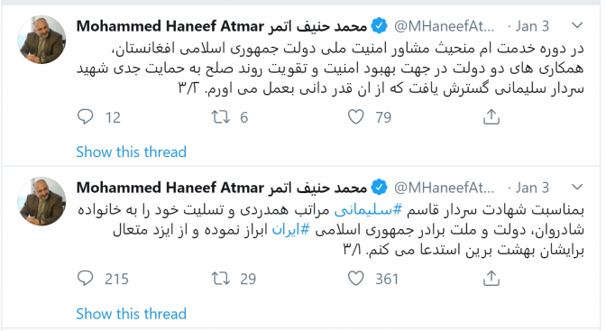 – محمد حنیف اتمر محمد حنیف اتمر (MHaneefAtmar) 3 ژانویه 2020